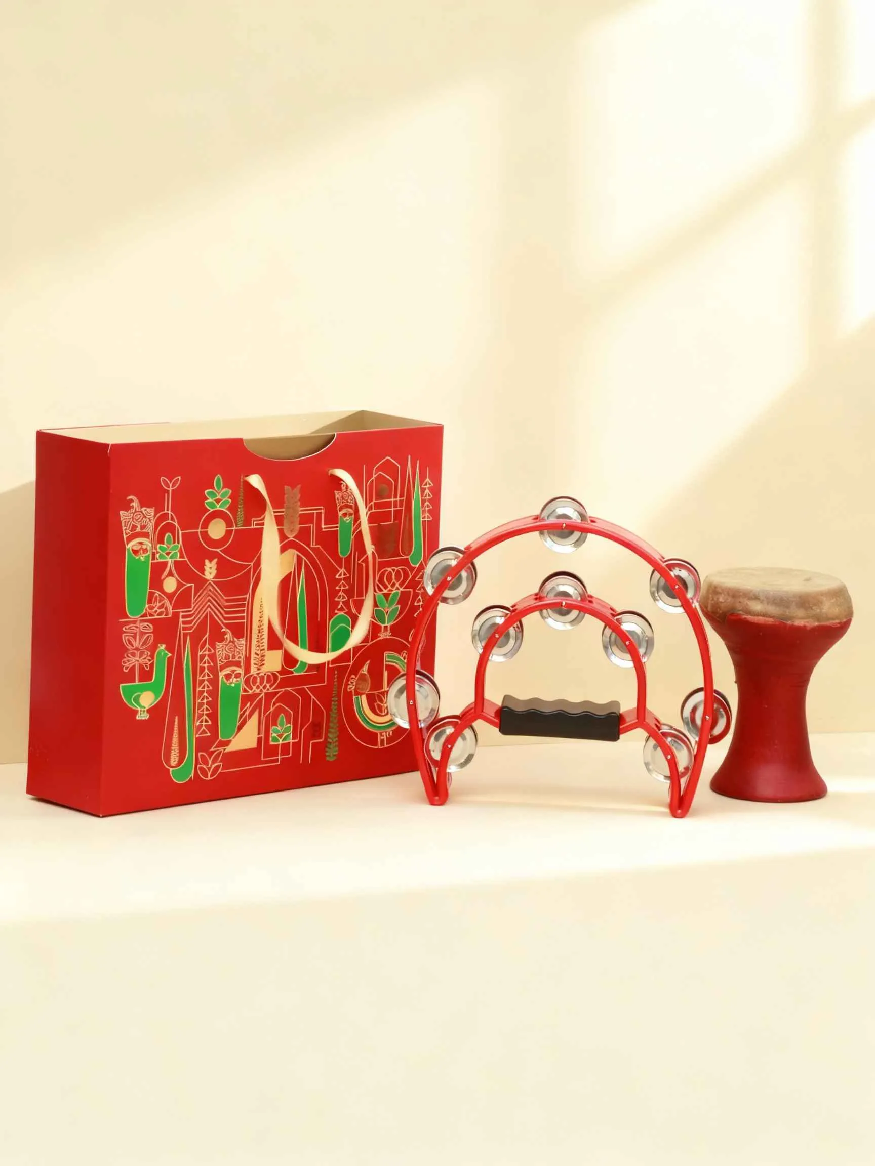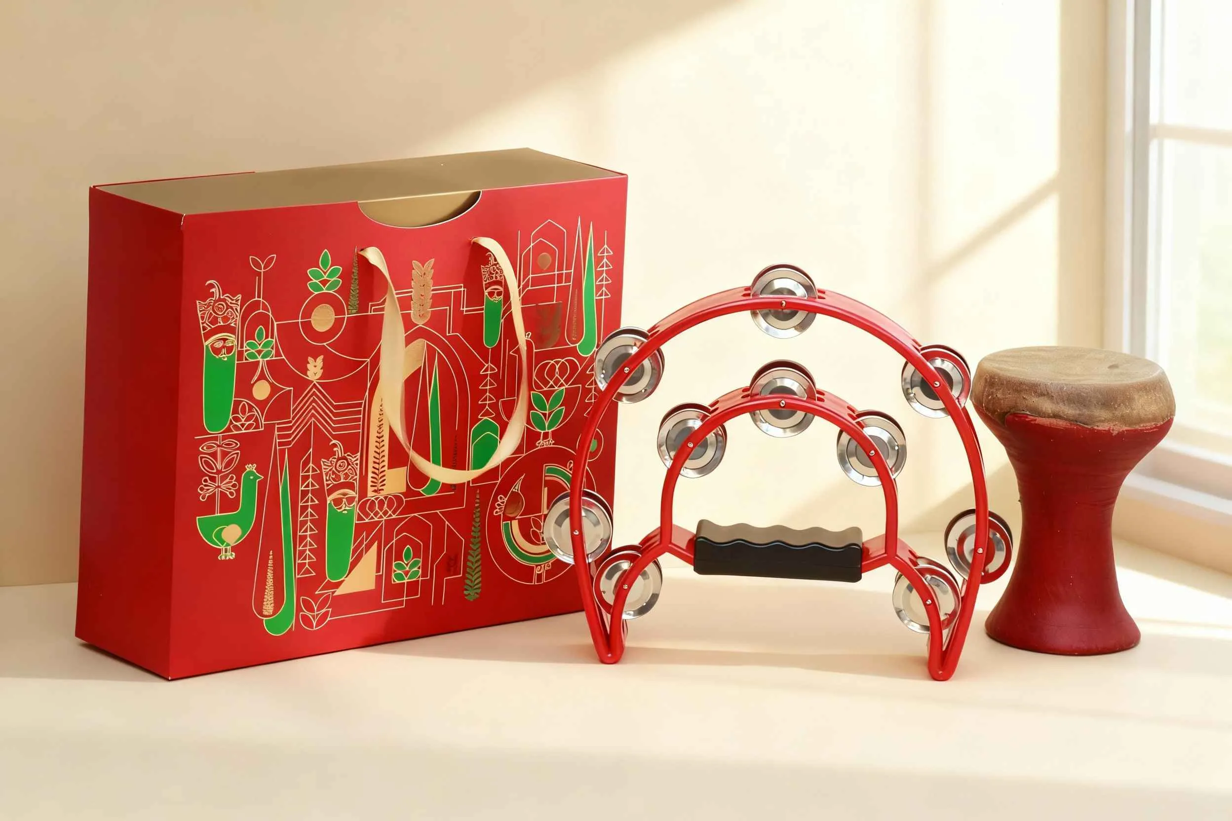 تنبورین این مجموعه با کیفیت درجه یک و نغمهای لطیف، حس رقص و شور را به فضا میآورد. صدای رقصان آن ترکیبی از شادی و اصالت است که هر شنونده را تحت تأثیر قرار میدهد. این ساز، تجربهای چندحسی و فاخر از موسیقی ایرانی ارائه میدهد و پک هدیه شب یلدا را به انتخابی بینظیر تبدیل میکند.