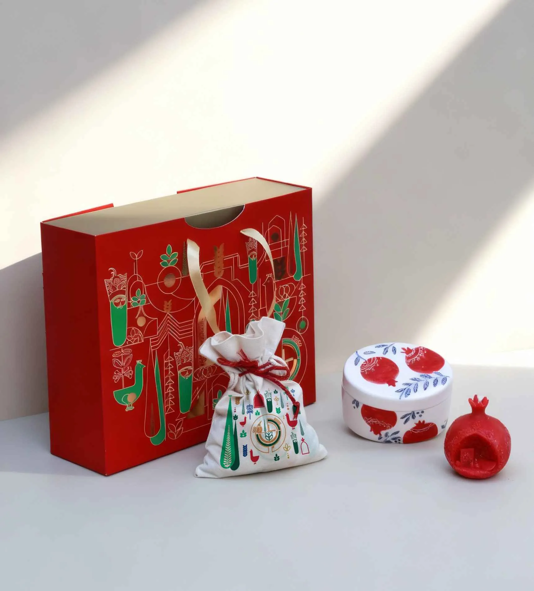 شکلات خوری سرامیکی در کادو یلدایی، شمع انار و آجیل شیرین اعلا با هم تجربه ای چند حسی، فاخر و اصیل ارائه میدهند و شب یلدا را به لحظه ای ویژه، شاعرانه و خاطره انگیز تبدیل میکنند.