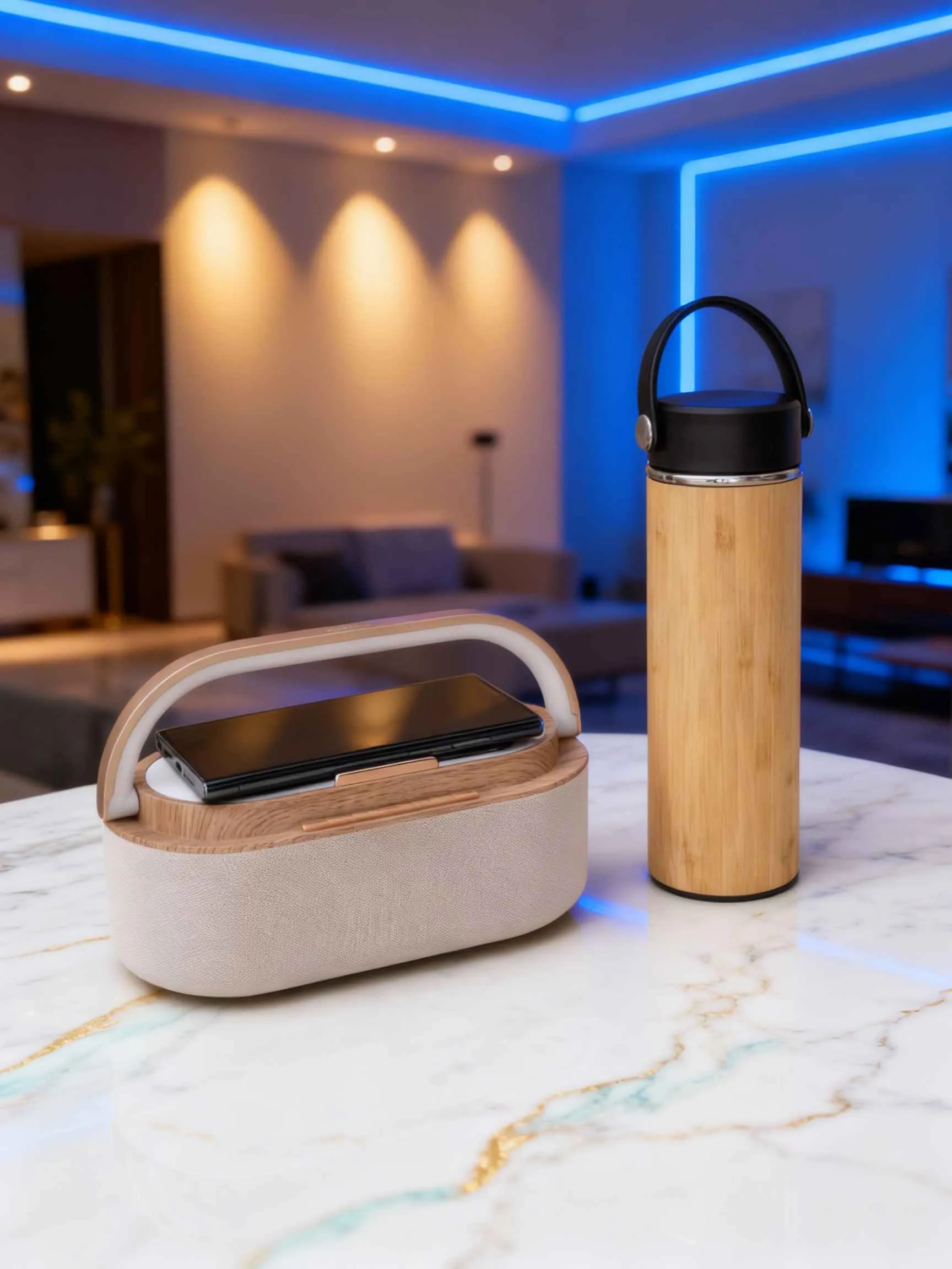 ترکیب اسپیکر هوشمند و تراول ماگ چوبی جلوه ای از هماهنگی مدرن را شکل داده است. این تلفیق نه تنها زیبا است، بلکه نشان از توجه به جزئیات و سبک زندگی امروزی دارد. هر جزء از پک یلدایی سازمانی با دقت انتخاب شده تا حس ارزش و معنا منتقل شود.