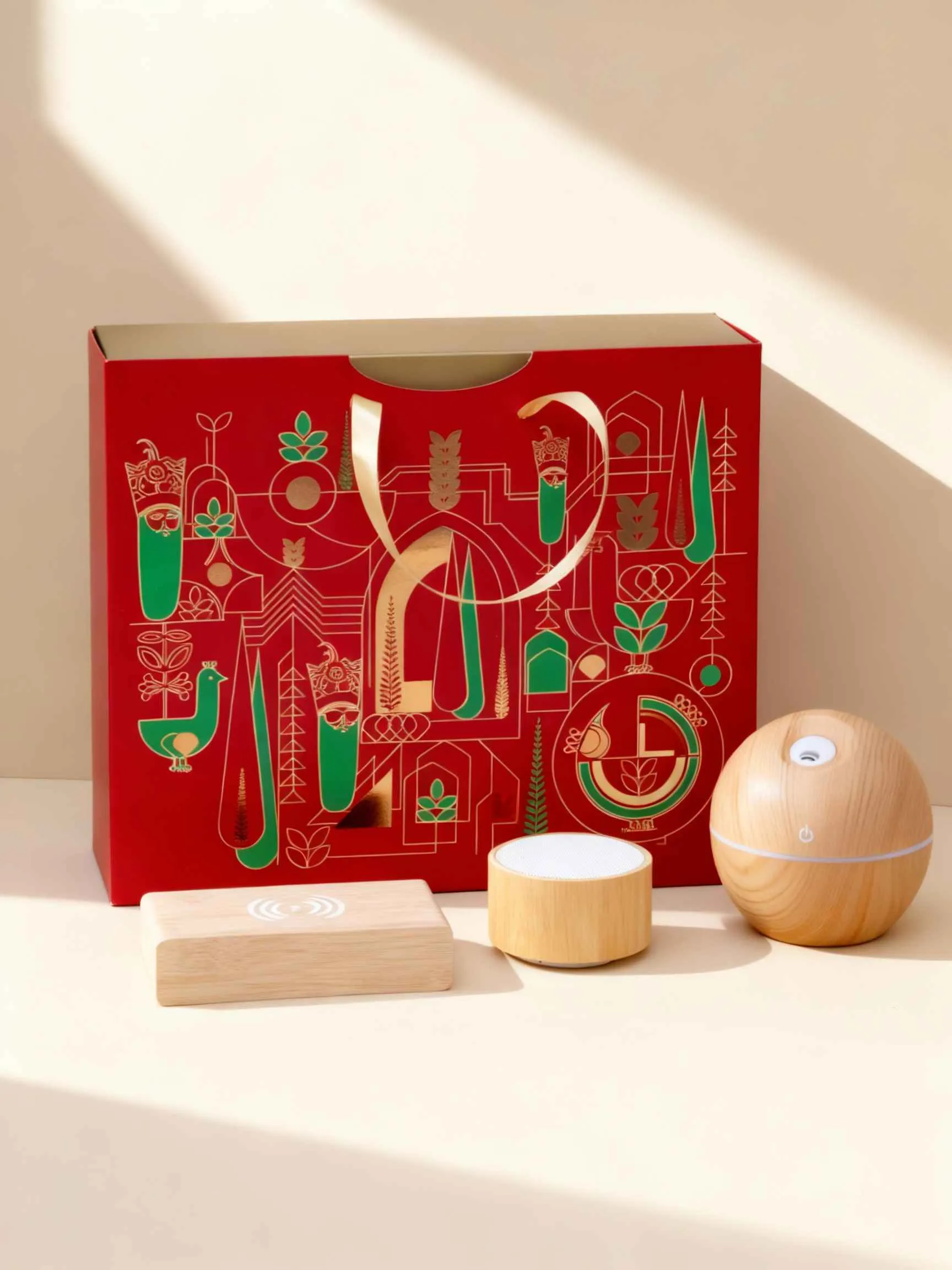 این مجموعه ترکیبی است از تکنولوژی، هنر و کیفیت لوکس؛ لذا ساعت دیجیتال، اسپیکر بلوتوث بامبو و دستگاه بخور سرد تجربه ای کامل و چند حسی از پک یلدایی لاکچری ارائه می دهند. هر بخش از مجموعه هدفمند و کاربردی طراحی شده تا علاوه بر زیبایی، عملکردی برتر و ماندگار داشته باشد.